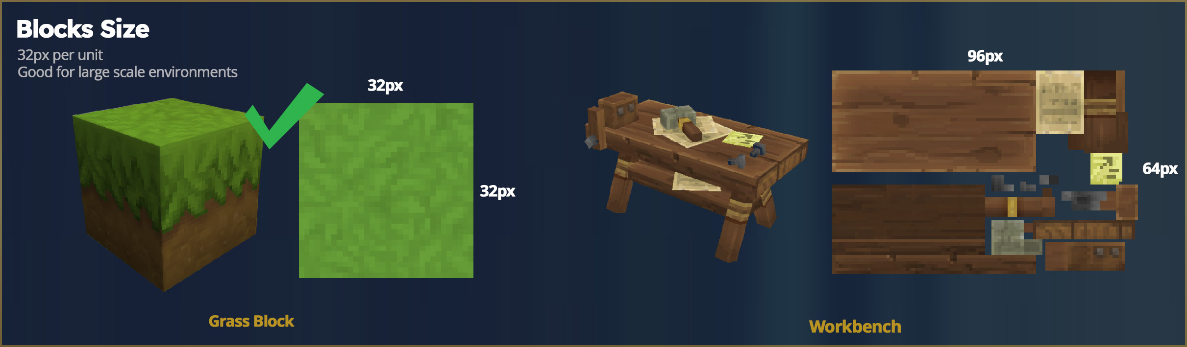 Option 2 – Blocs et props : densité de 32 pixels par unité. Cette catégorie couvre tous les autres éléments, des cubes simples aux meubles en passant par les éléments de décor d’environnement.